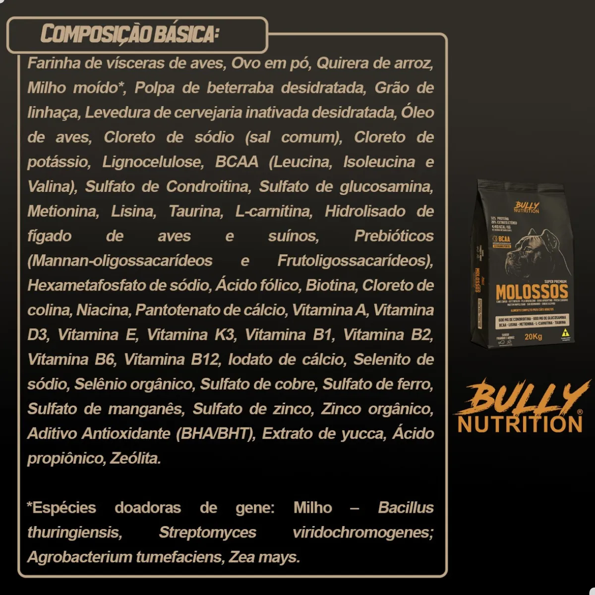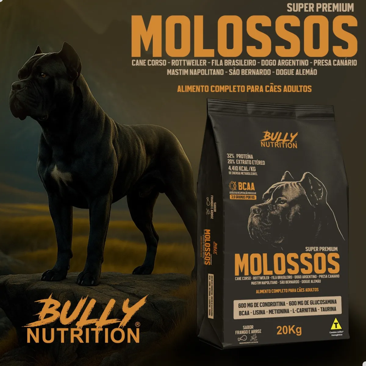 Garanta agora a Ração Molossos Bully Nutrition 20kg Super Premium e eleve o nível da nutrição do seu cão.